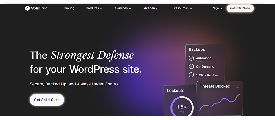 - SolidWP- One size fits all: Backups, monitoring, and security hardening.